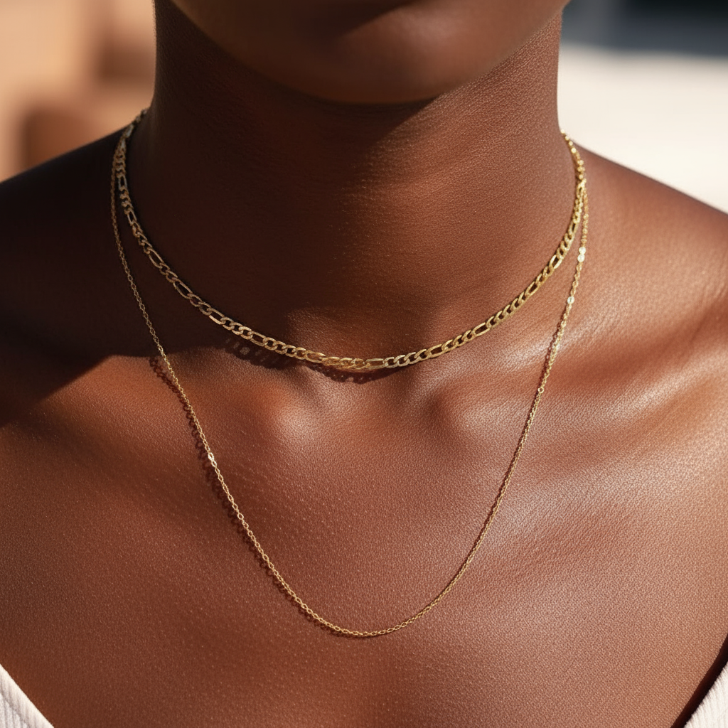 Crafted from 316L surgical-grade stainless steel and coated in luminous 18K PVD gold, this necklace is non-tarnish, waterproof, and hypoallergenic — gentle on sensitive skin and strong enough for everyday wear.
