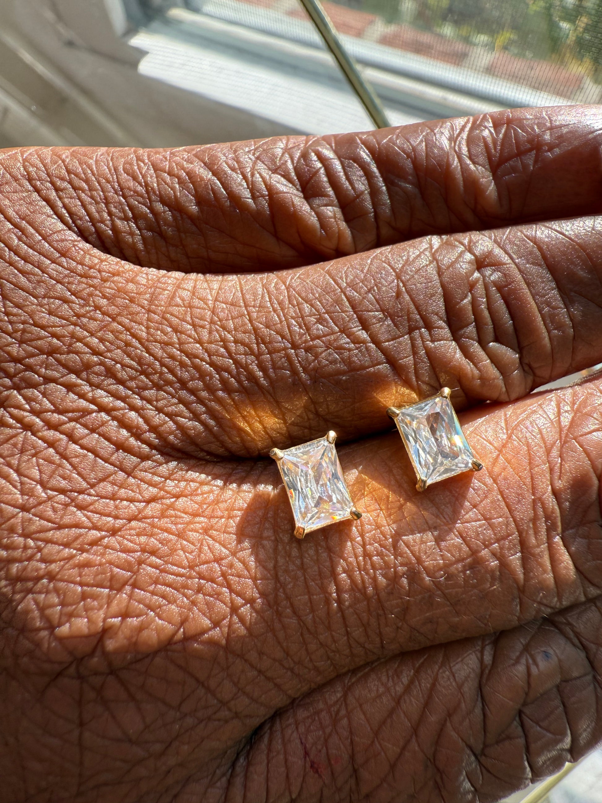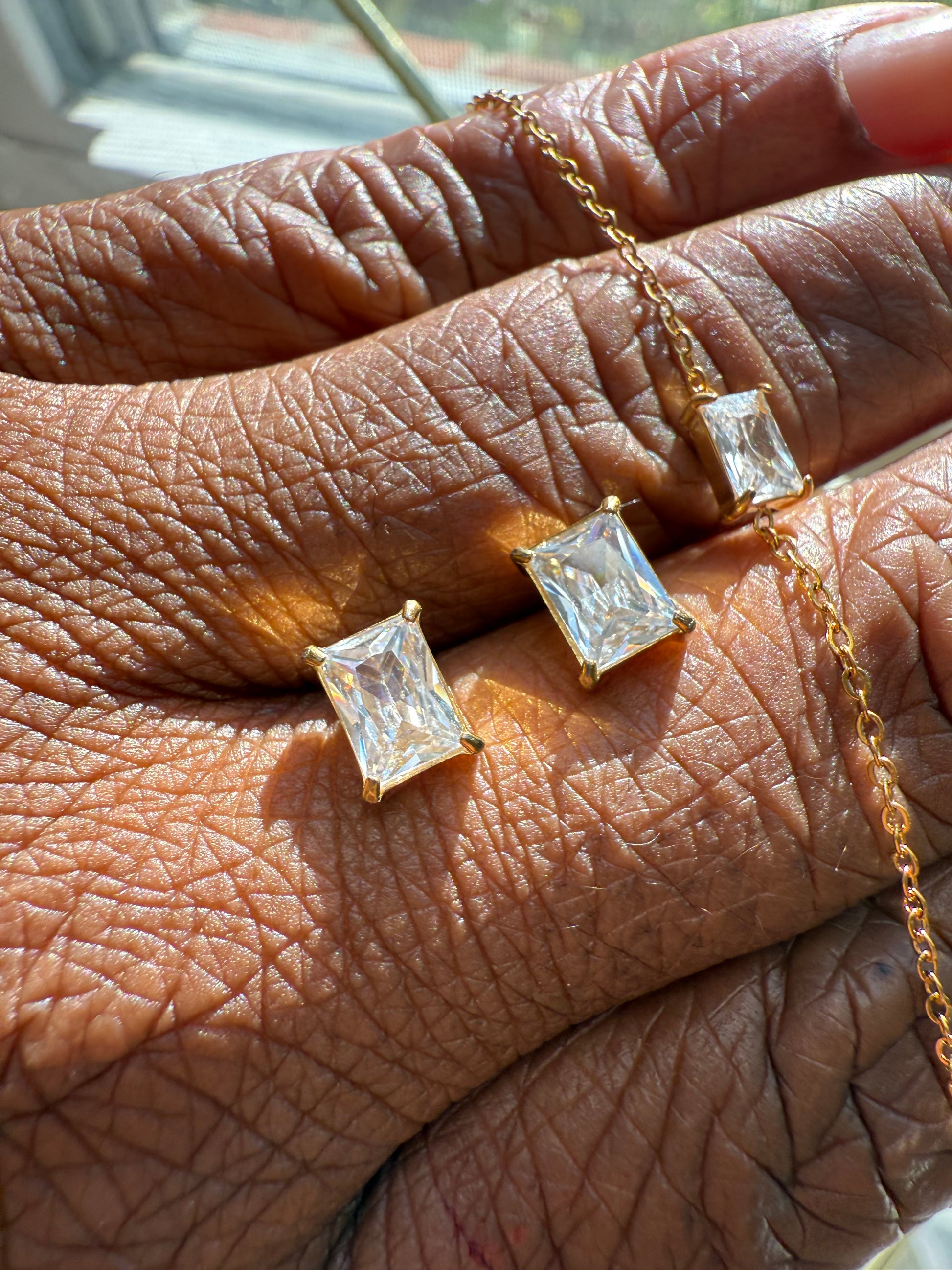 Clarity Earrings – Rectangle White Zircon Studs 18k gold plated stainless steel