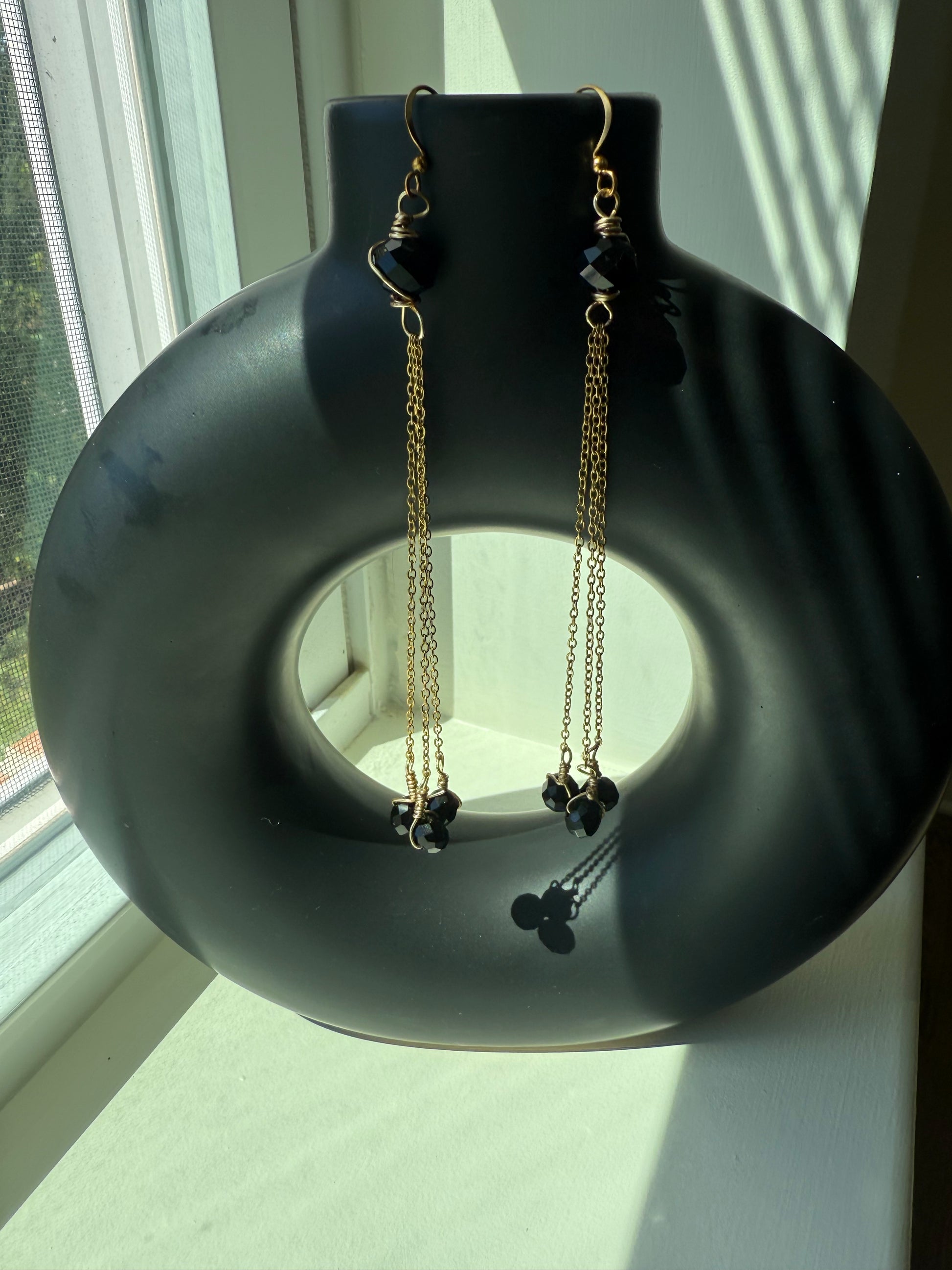 The Elaine Earrings bring understated glamour to your daily look — featuring wire-wrapped rondelle beads suspended along a sleek stainless steel chain. Lightweight, radiant, and handcrafted with care, they’re designed to complement your natural beauty with just the right touch of shimmer.