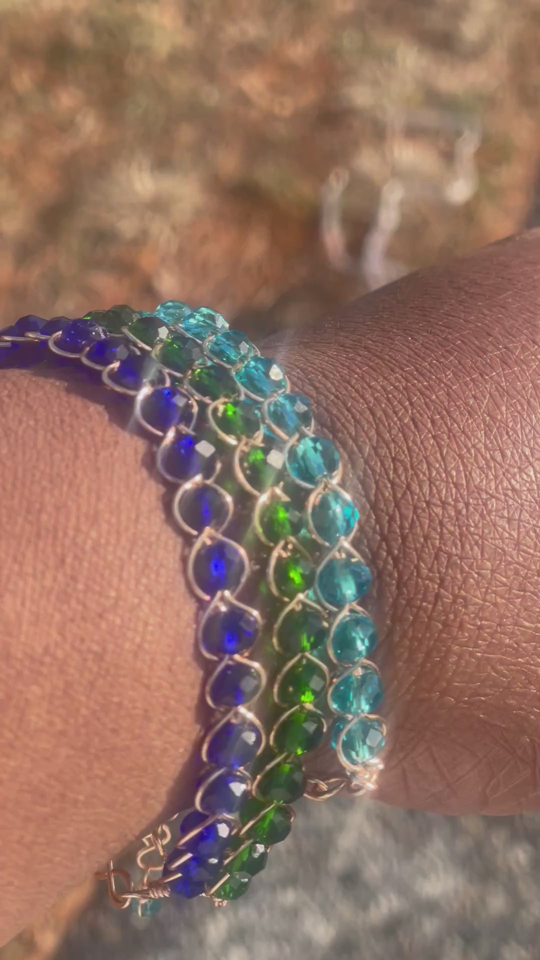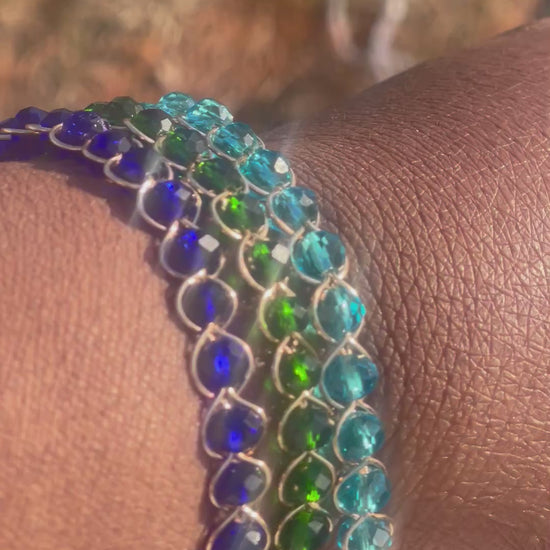 Lush green hues meet hand-shaped artistry. The Will and Mae Emerald City Green Bracelet is a handcrafted statement — made with love, light, and a touch of magic. Built on a braided copper wire base, it features seven hammered, hand-shaped links, each designed to create a gently textured rhythm across the wrist.