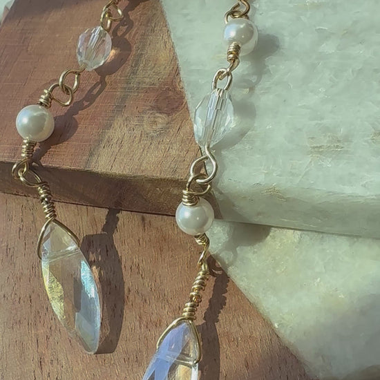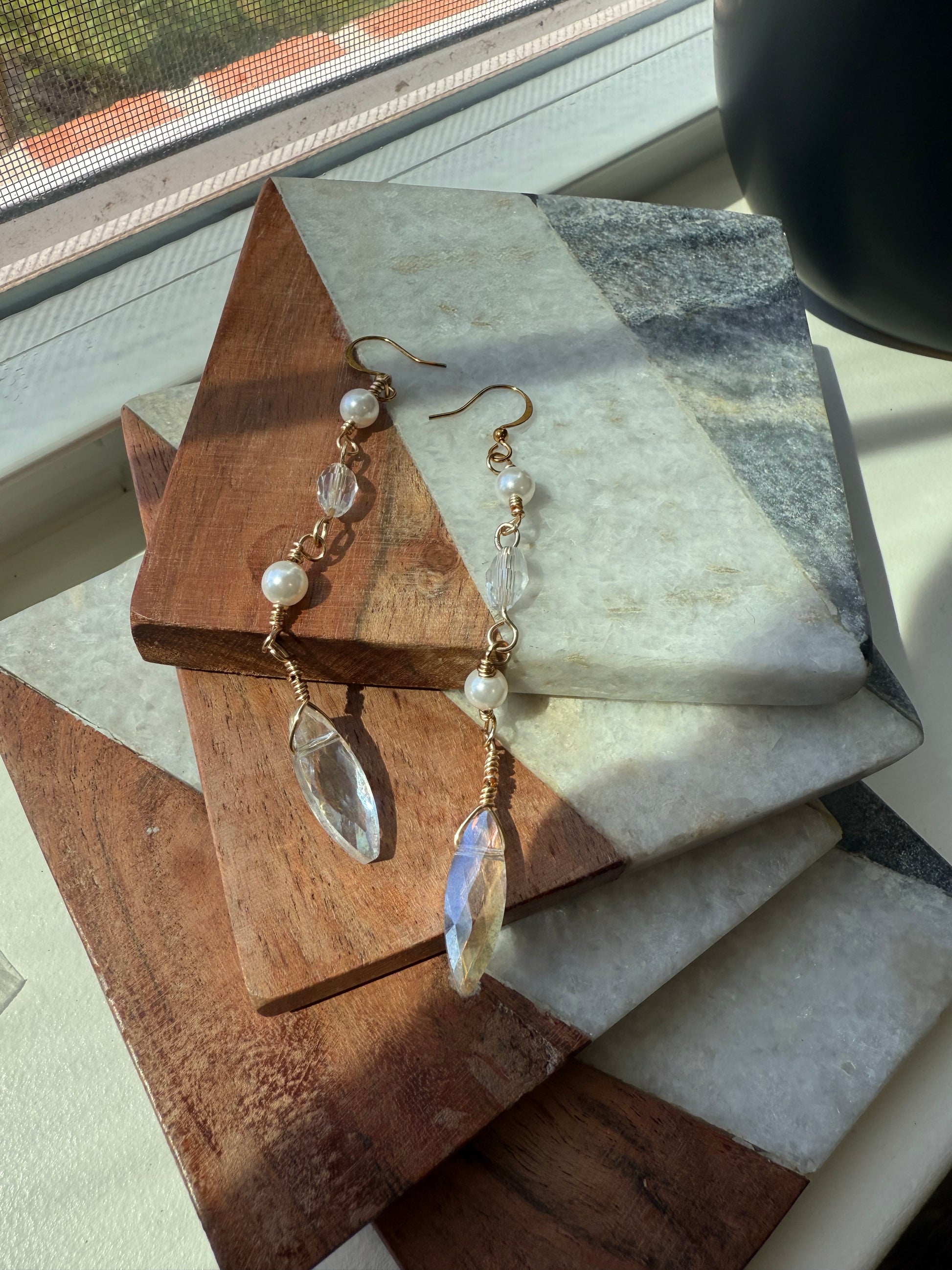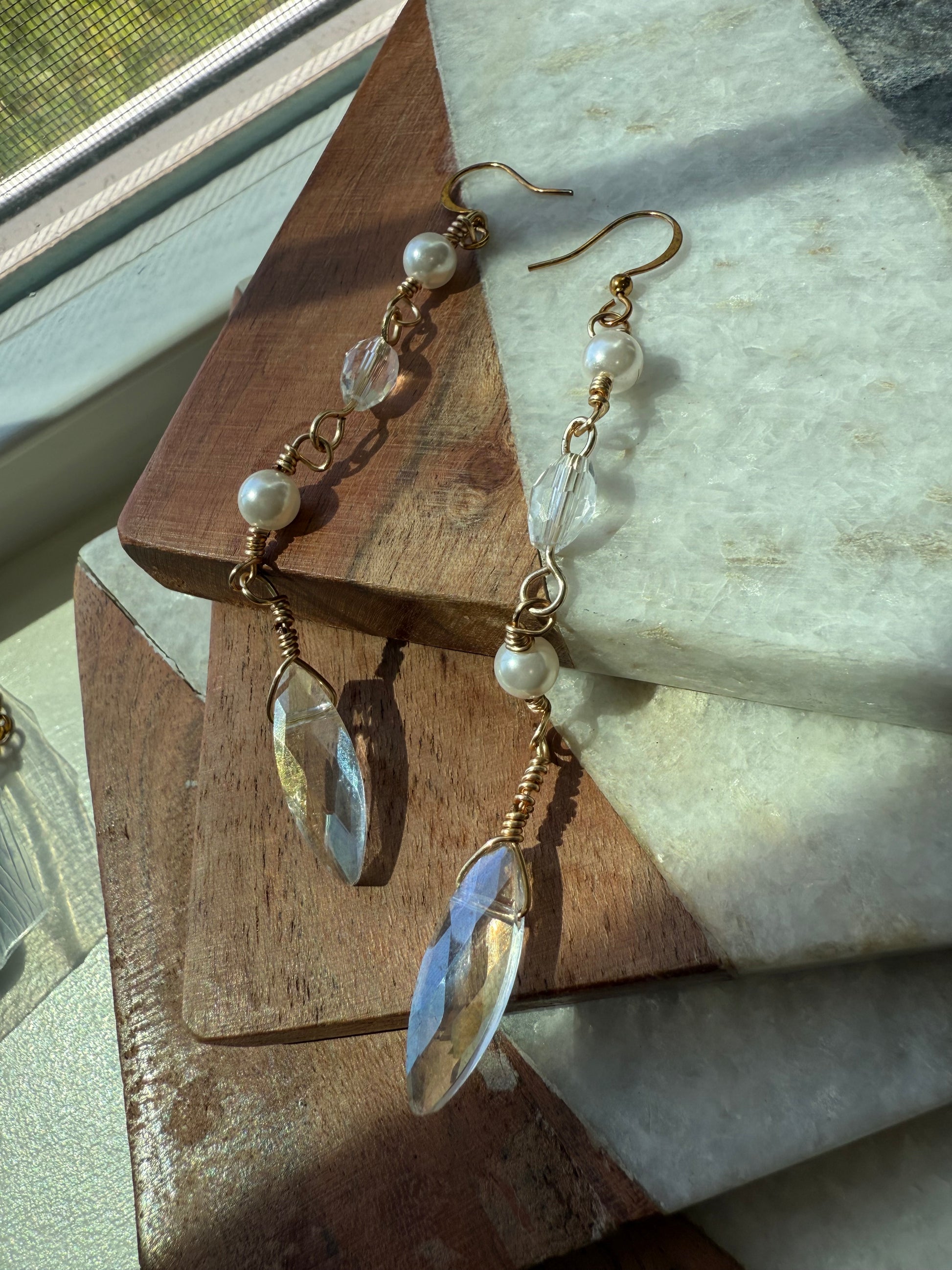 Handcrafted Feyre Starfall Earrings inspired by A Court of Mist and Fury. Featuring pearls & clear beads in a luxurious cascading design — perfect for fantasy lovers & elegant occasions,