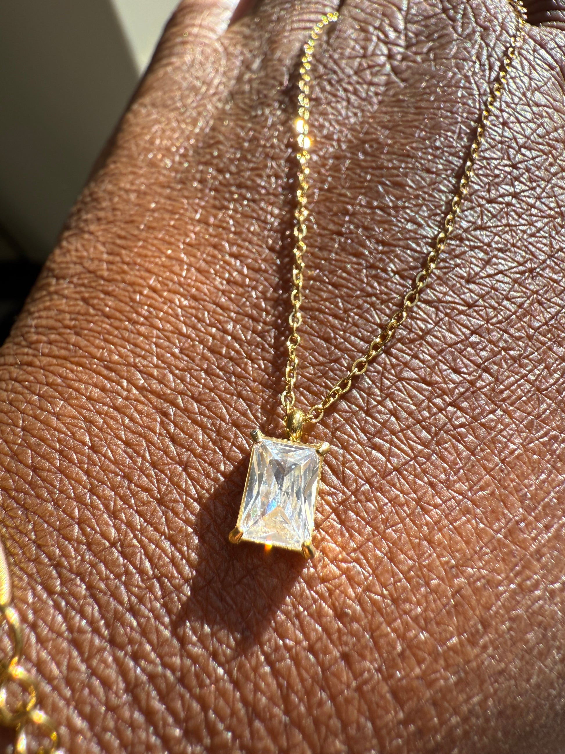 Clarity Rectangle White Zircon Necklace 18k gold plated stainless steel