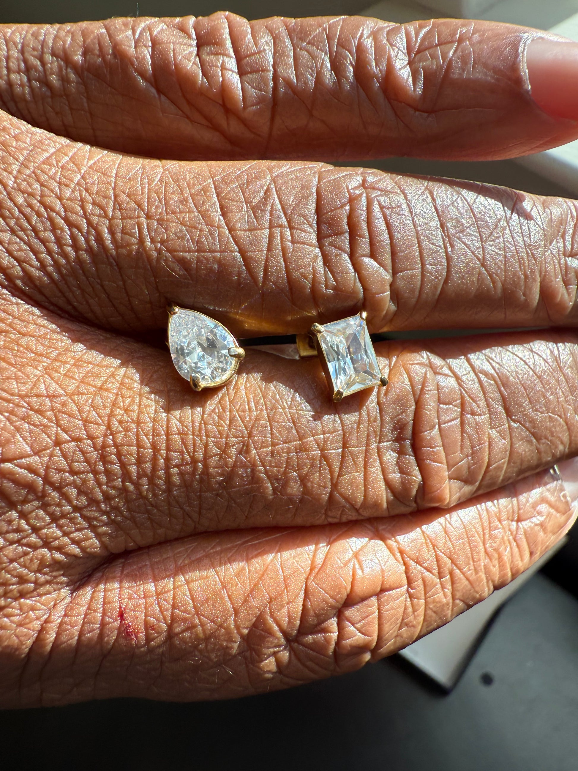 • Mix & match stud pair (rectangle + teardrop design)