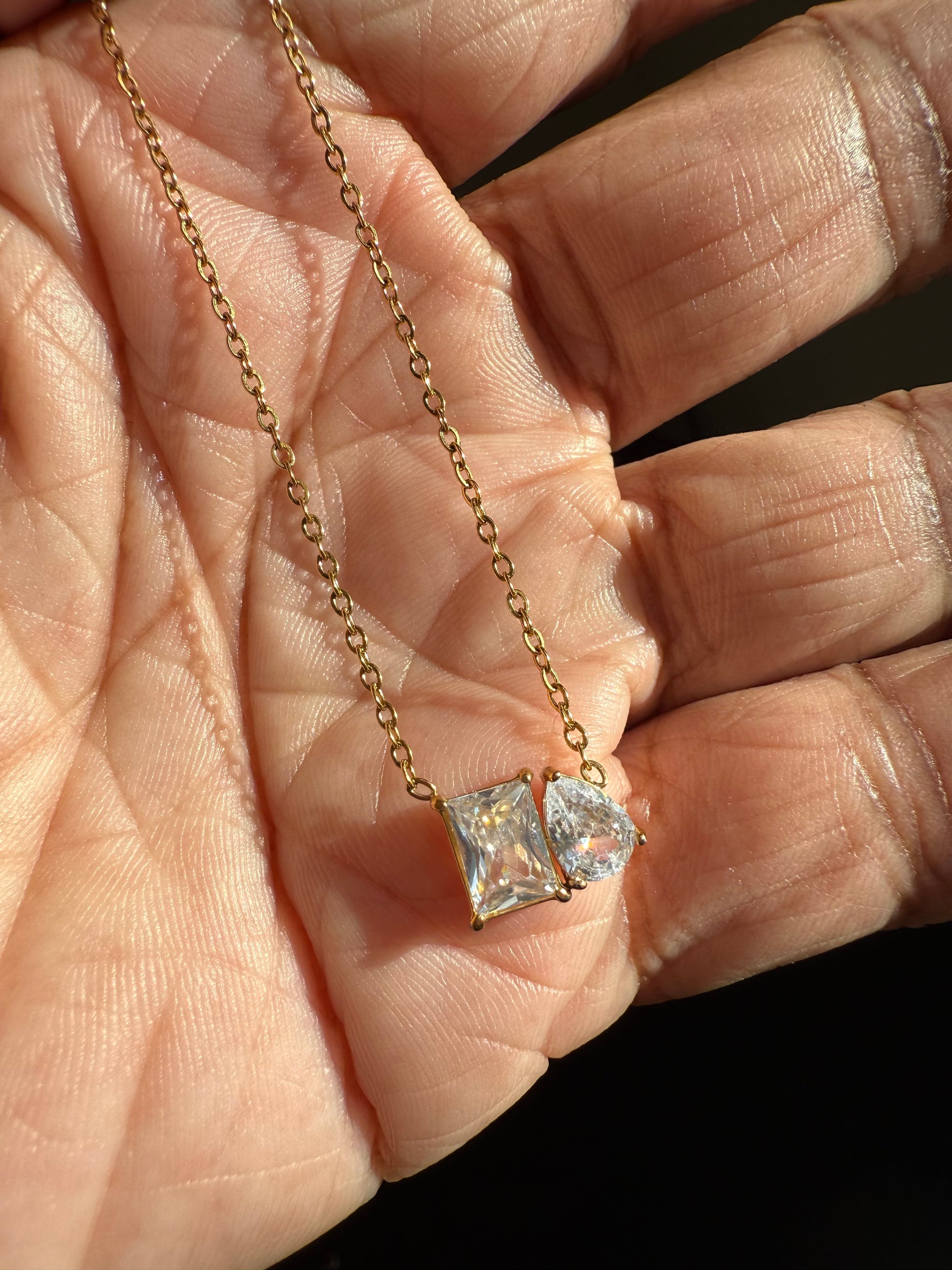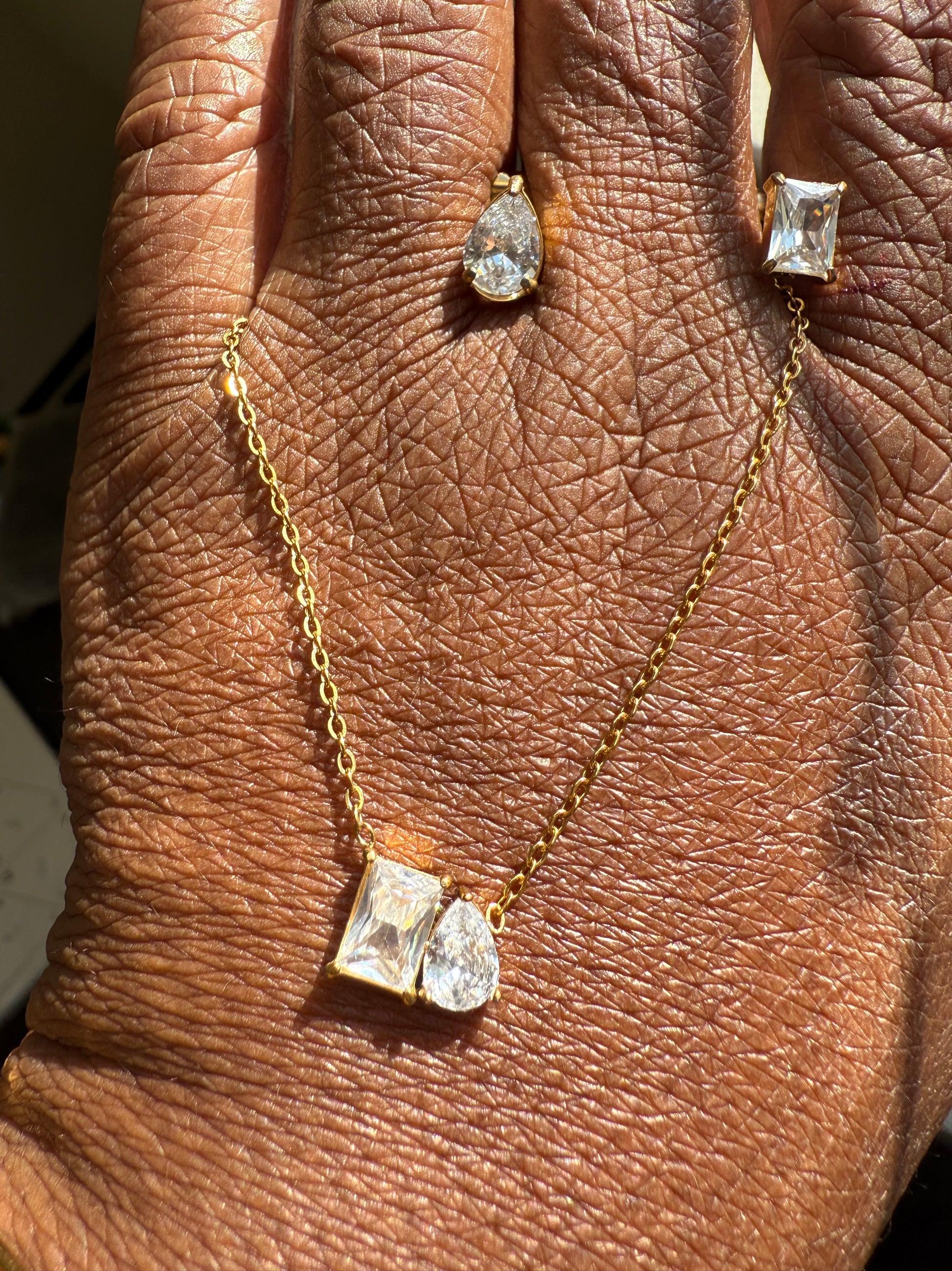 Balance Square Teardrop White Zirconia Necklace 18k gold plated stainless steel